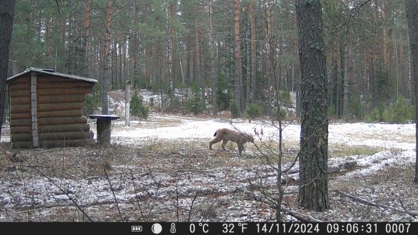 Фотоловушка запечатлела грациозного хищника, уверенно исследующего окружающую природу. Судя по внимательному поведению, рысь явно была настроена на охоту.