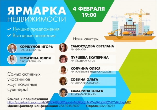 4 февраля в 19:00 Сбер совместно с агентствами недвижимости города Йошкар-Олы проводит в онлайн формате «Ярмарку Недвижимости» для жителей региона.