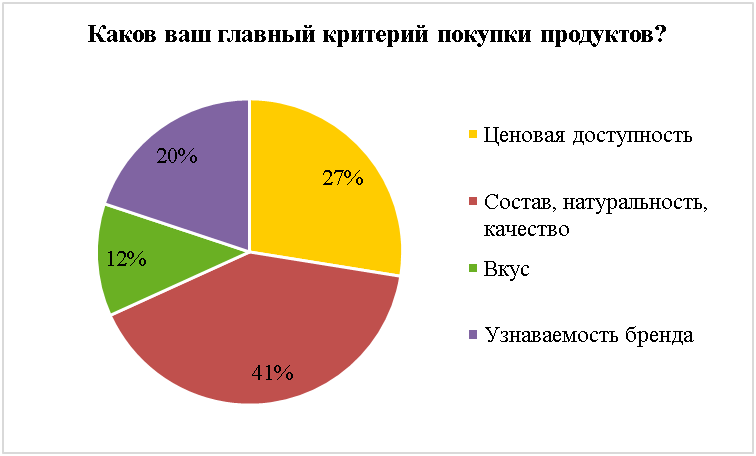 Согласно полученным данным, 41% россиян заявил, что при выборе продуктов питания в первую очередь обращают внимание на состав, его натуральность и качество. Доступность цены остается определяющим фактором у 28% опрошенных, узнаваемость бренда влияет на решение покупки 20% потребителей, а 12% респондентов нашей страны называют самым важным фактором вкусовые характеристики продукта.