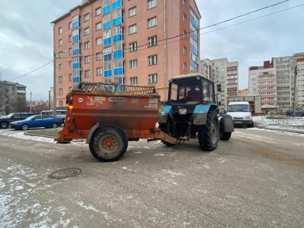 В МУП "Город" сообщили, что только за минувшие сутки на обработку дорог направлено 9 тонн пескосоляной смеси и 16 тонн - на тротуары.