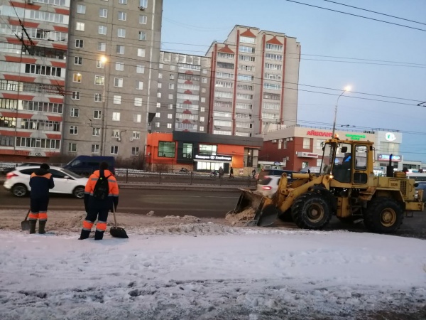 Коммунальщики проводят механизированную очистку от снега дорожного покрытия, остановок общественного транспорта и тротуаров. Также они вывозят снег и посыпают опасные участки для предотвращения образования гололеда.