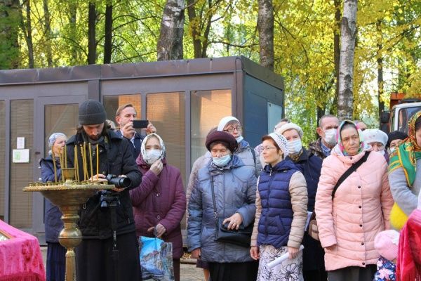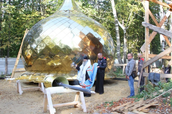 24 сентября в микрорайоне Тарханово митрополит Йошкар-Олинский и Марийский Иоанн в сослужении клирика Успенского храма иерея Алексия Михеева освятил купола и кресты для храма в честь иконы Божией Матери «Всех скорбящих Радость».