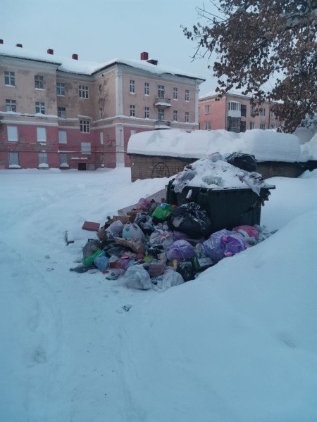 По словам женщины, здесь расположена площадка для сбора мусора, но из-за снежных заносов техника не может проехать.