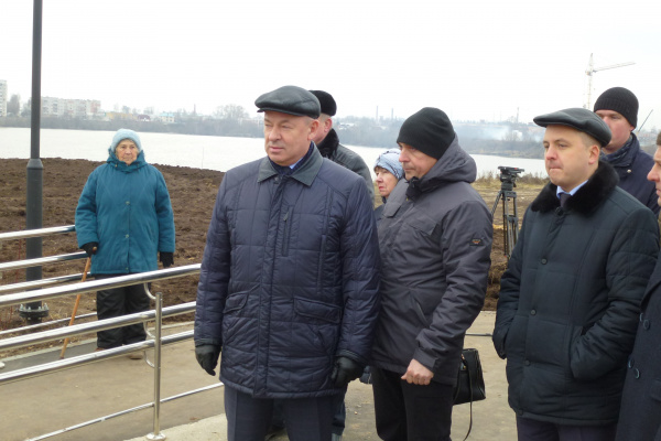 Встреча состоялась, так сказать, в преддверии аллеи — на участке, где уже возвышаются двое металлических ворот и проложены спускающиеся каскадом дорожки для пешеходов. Сначала на вопросы журналистов ответил мэр марийской столицы Евгений Маслов.