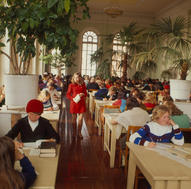 В годы войны здесь занимались видные советские ученые из эвакуированного в Йошкар-Олу Государственного оптического института – академики Сергей Вавилов, Илья Гребенщиков. Здесь же работал выдающийся советский физик Георгий Флёров, когда готовил письмо Иосифу Сталину о необходимости создания советской атомной бомбы. В нашей библиотеке в суровом 1941 году читал лекции академик Евгений Тарле – автор книг о Наполеоне и Отечественной войне 1812 года, аналогия которой с 1941 годом тогда прочитывалась советскими людьми сразу.В библиотеке за многие годы были собраны значительные книжные сокровища, работали здесь замечательные подвижники книги. Память об одном из них – Василии Орлове, возглавлявшем коллектив библиотеки с 1958 по 1976 год, хранится в ежегодно проводимых в Национальной библиотеке Орловских чтениях. При Орлове в 1968 году был построен второй корпус библиотеки, в котором работает межбиблиотечный абонемент и можно получить любую книгу из российских библиотек.