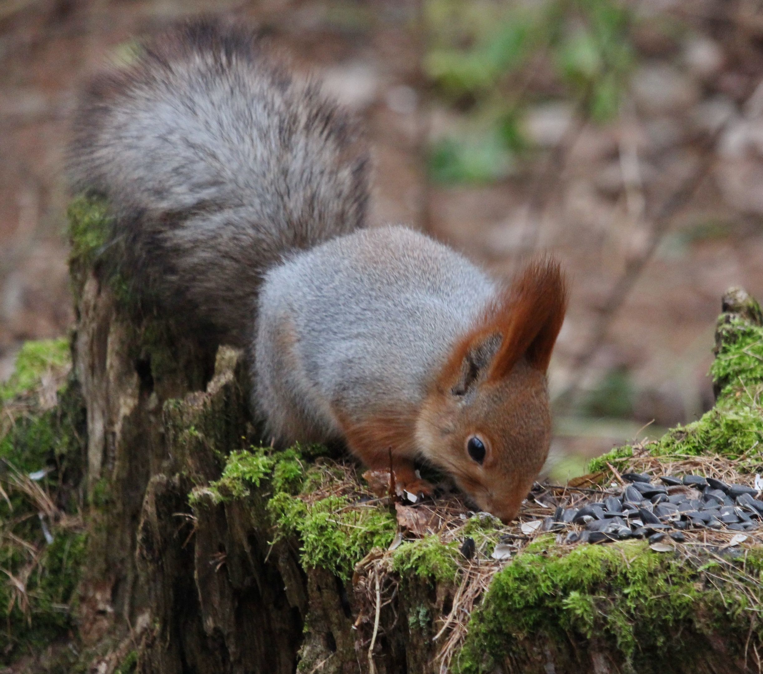 - Сегодня ходил в рощу кормить птиц. Как обычно насыпал семечки на пни. И тут же стали подлетать и кормиться птицы. А я начал фотографировать. В это время мимо пробегала белка. И заметила кормушку. Подбежала и спокойно стала грызть семечки. Вот такая приятная радостная встреча. Теперь придется купить орехи. Надо угостить, - пишет Петр Васильев в своем паблике ВКонтакте.