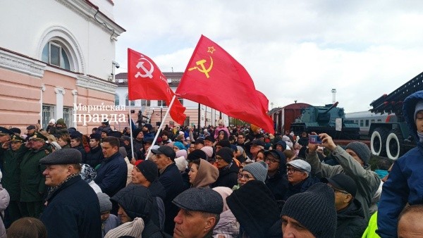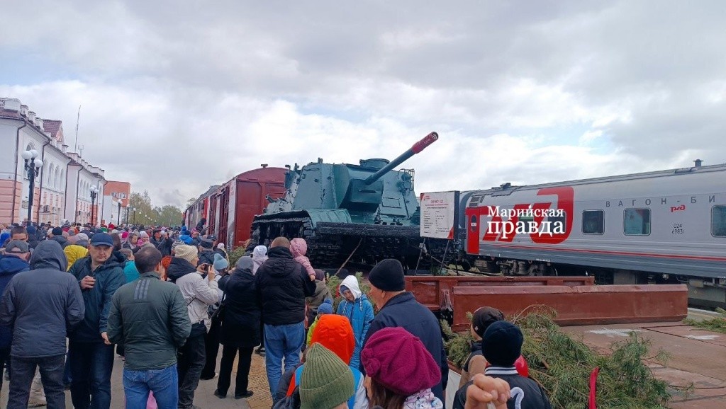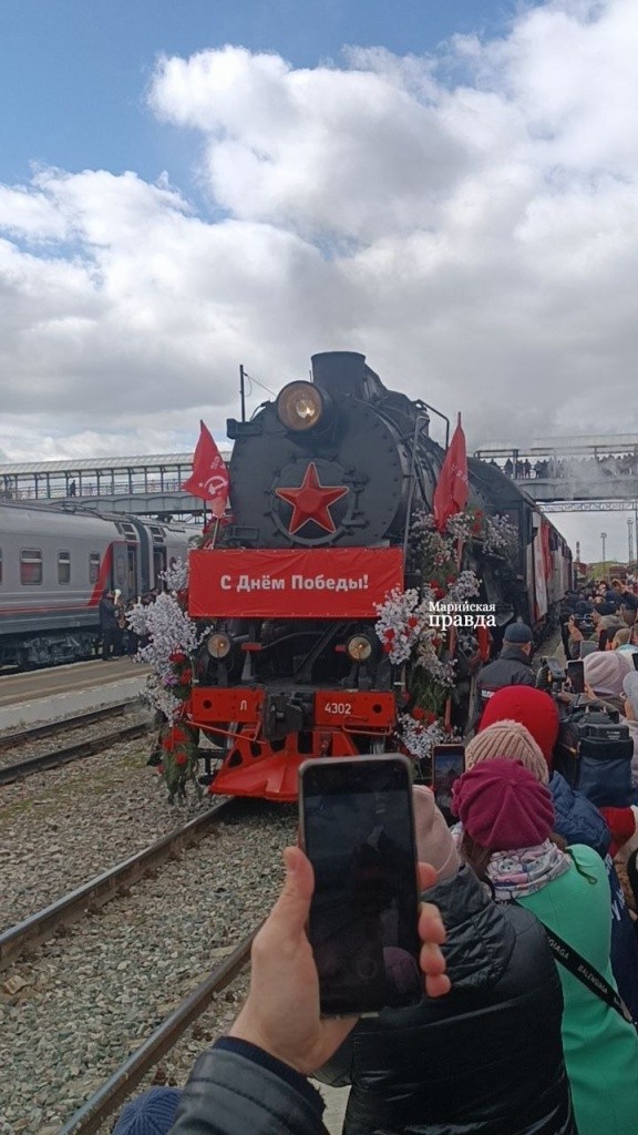 В составе поезда ‒ шесть платформ с выставочными образцами техники военных лет, два вагона-теплушки с полевой кухней и фотозоной. Более сотни йошкаролинцев уже смогли оценить легендарный паровоз серии Л-4302, а также принять участие в торжественной программе, включившей митинг, небольшой концерт, работу полевой кухни.