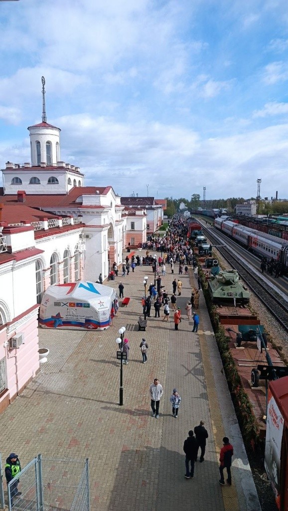 Сегодня, 28 апреля, в 14:10 в Йошкар-Олу приехал мемориальный «Поезд Победы». Прямо сейчас он отправляется дальше.