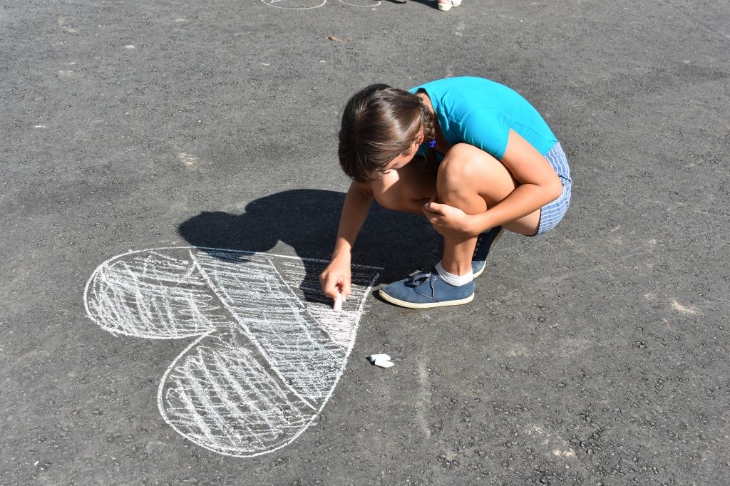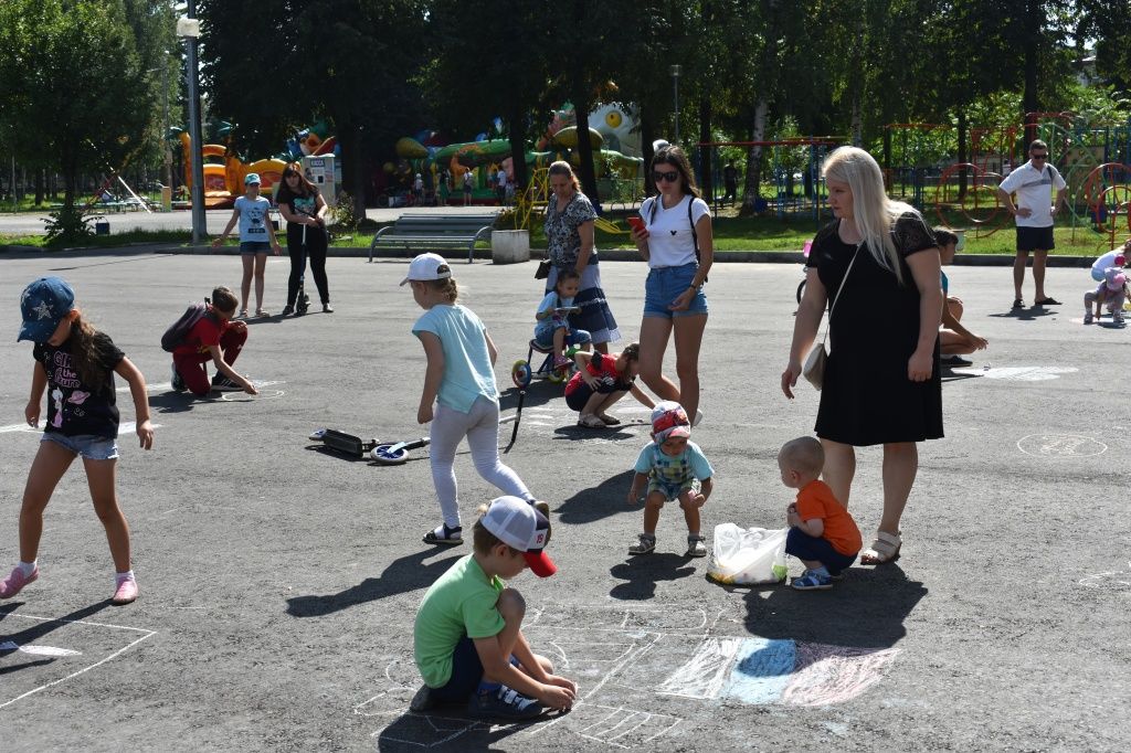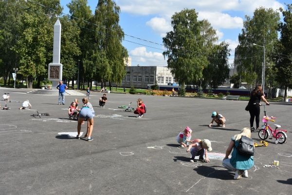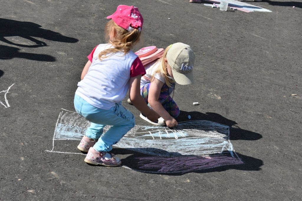 В 12.00 ведущая объявила начало детского праздника открытым и предложила желающим сделать мир ярче – в буквальном смысле! – нарисовав на асфальте флаг − государственный символ России. Дети с энтузиазмом принялись за дело и подошли к нему творчески: кто-то решил победить в конкурсе рисунков, сделав свое «произведение искусства» самым большим, кто-то решил флаг России нарисовать не прямоугольным, а виде сердечка. Все участники получили сладкие призы. Кстати, похожие мероприятия прошли в ДК имени ХХХ-летия Победы и библиотеке-филиале № 7.