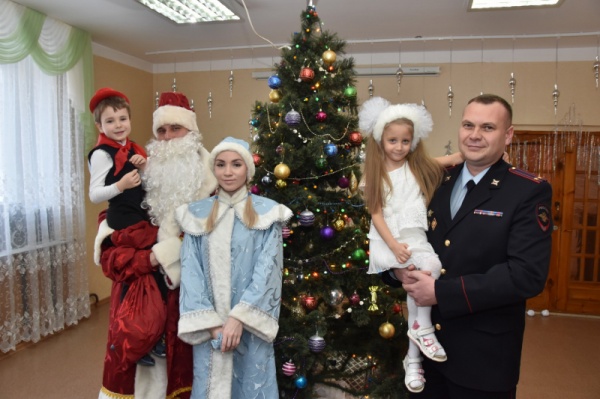 Полицейские вместе с Дедом Морозом и Снегурочкой поздравили ребят с Новым годом и вручили им сладкие подарки. Дети, в свою очередь, рассказали сказочным героям стихи и спели новогодние песни. А после сотрудники полиции и сказочные герои вместе с ребятами водили хоровод вокруг ёлки.