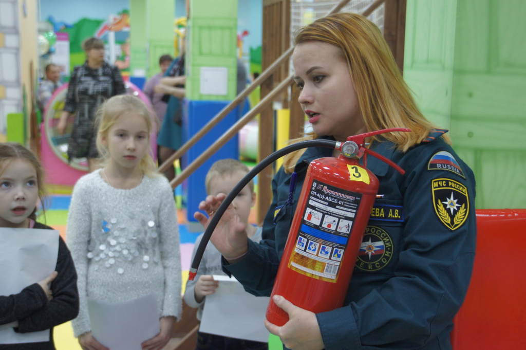 В одном из детских развлекательных центров Йошкар-Олы сотрудница МЧС провела с детьми обучающее занятие по пожарной безопасности, в ходе которого ребята научились пользоваться огнетушителем.