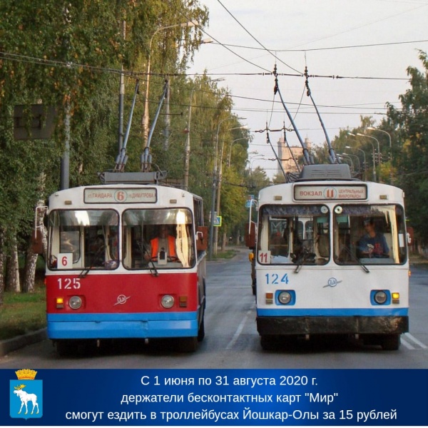 С 1 июня до конца августа стоимость проезда в троллейбусах Йошкар-Олы пассажирам обойдется в 15 рублей.