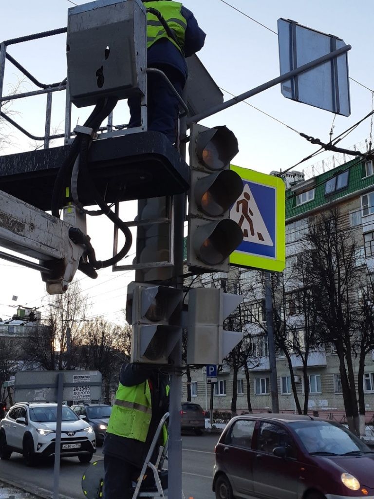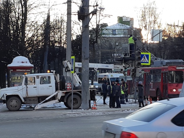 Сегодня утром в марийской столице на перекрестке улиц Первомайской и Красноармейской иномарка врезалась в другой автомобиль и протаранила светофорный столб.
