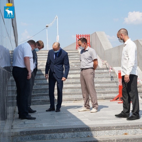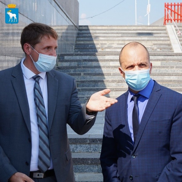 В рамках рабочей поездки мэр Йошкар-Олы Евгений Маслов пообщался с представителем подрядной организации, а также ректором МарГУ Михаилом Швецовым, который является куратором проекта благоустройства зон отдыха на набережной.