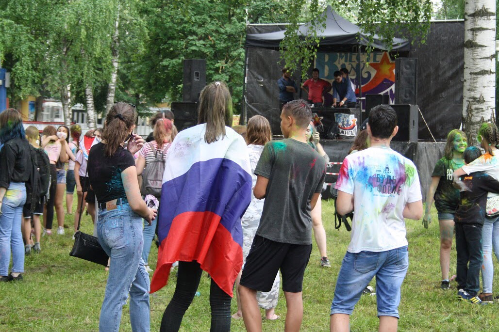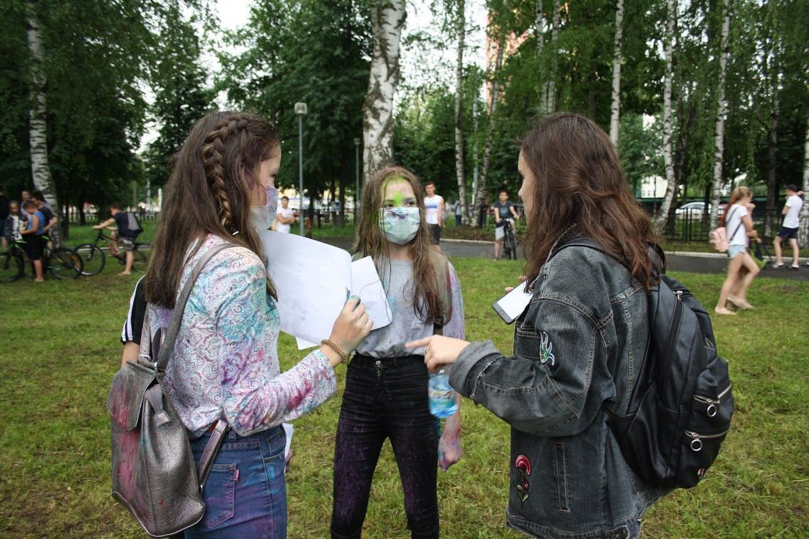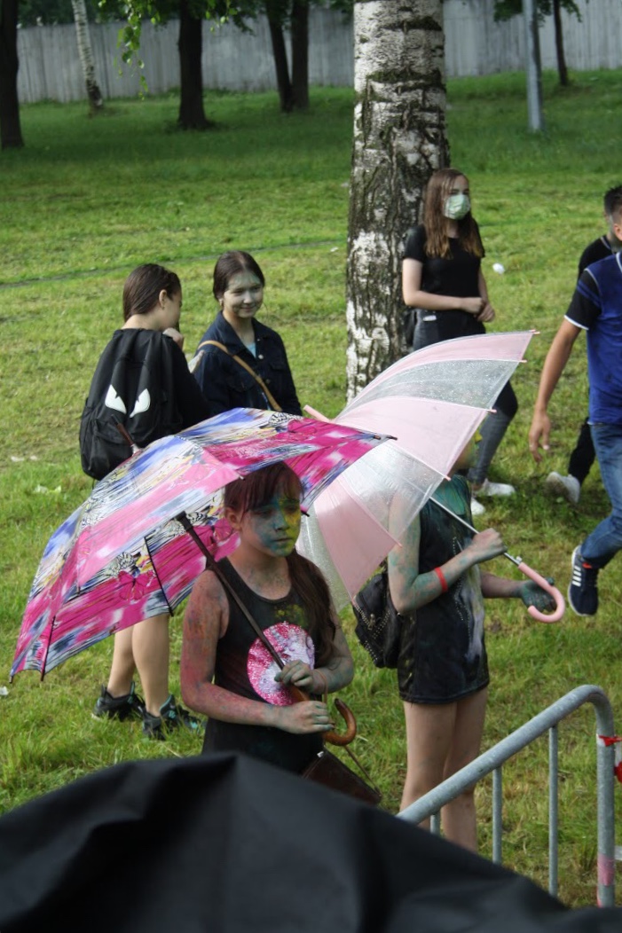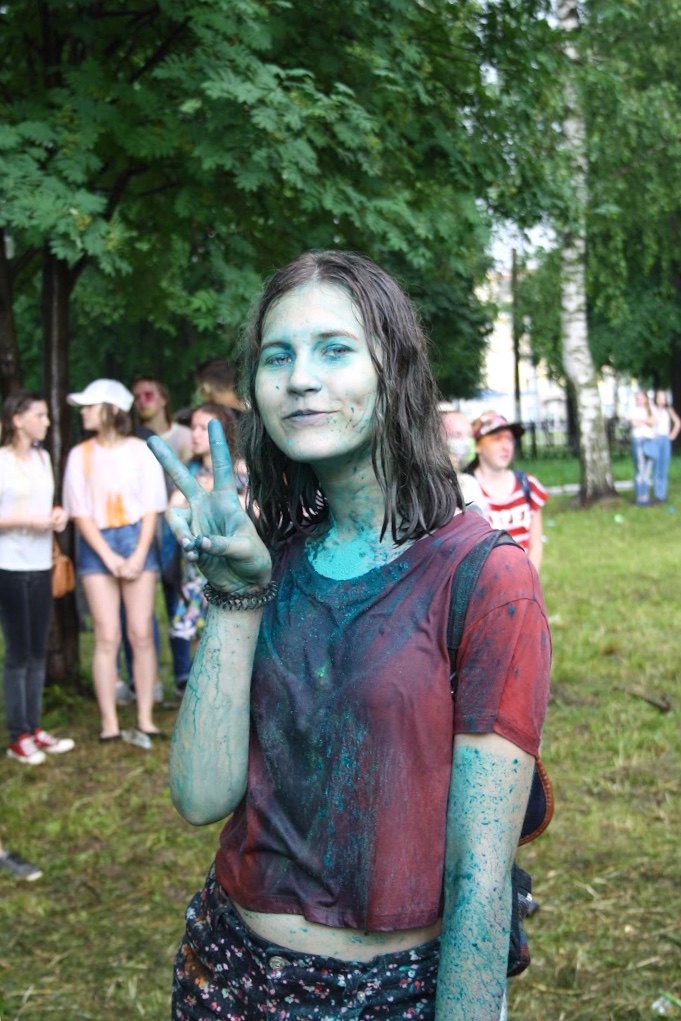 В этом году ежегодный Всероссийский фестиваль красок, стартовавший в Йошкар-Оле вчера, 7 июля, городская молодежь отметила под сильным ливнем. Дождь не разогнал по домам ребят, а лишь добавил новых эмоций.