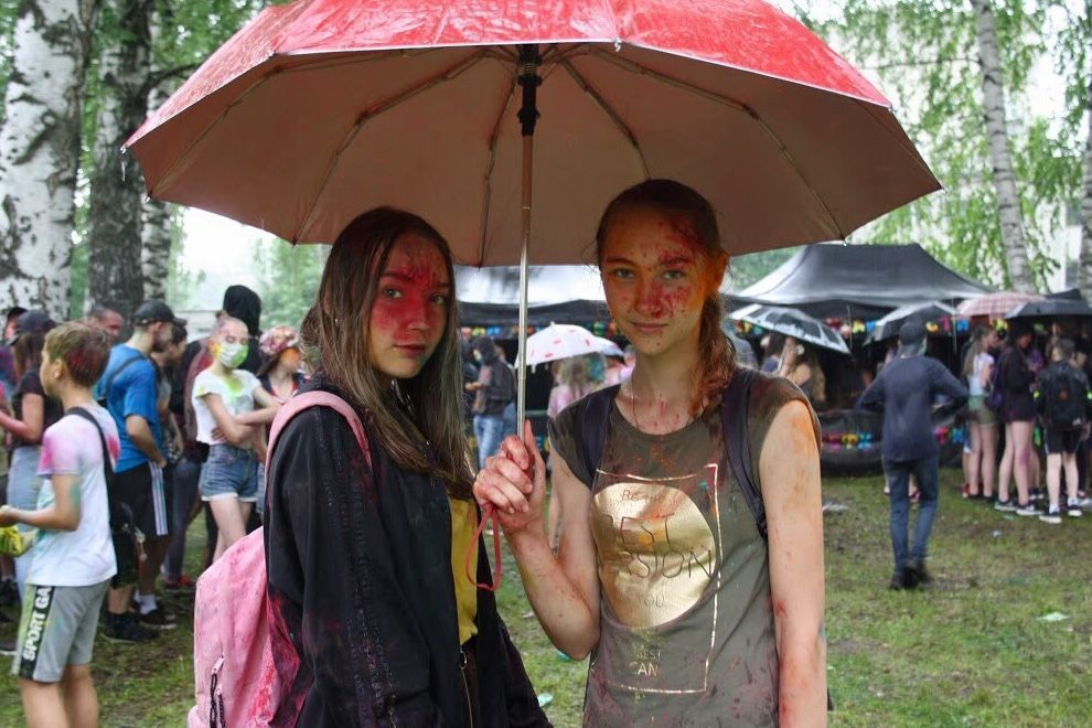 - Несмотря на дикие погодные условия, мы продолжаем танцевать. Впервые фестиваль красок проходит под дождем. Я считаю, что это новый формат мероприятия, - рассказывает Евгения Иванова, ученица 8-го класса.