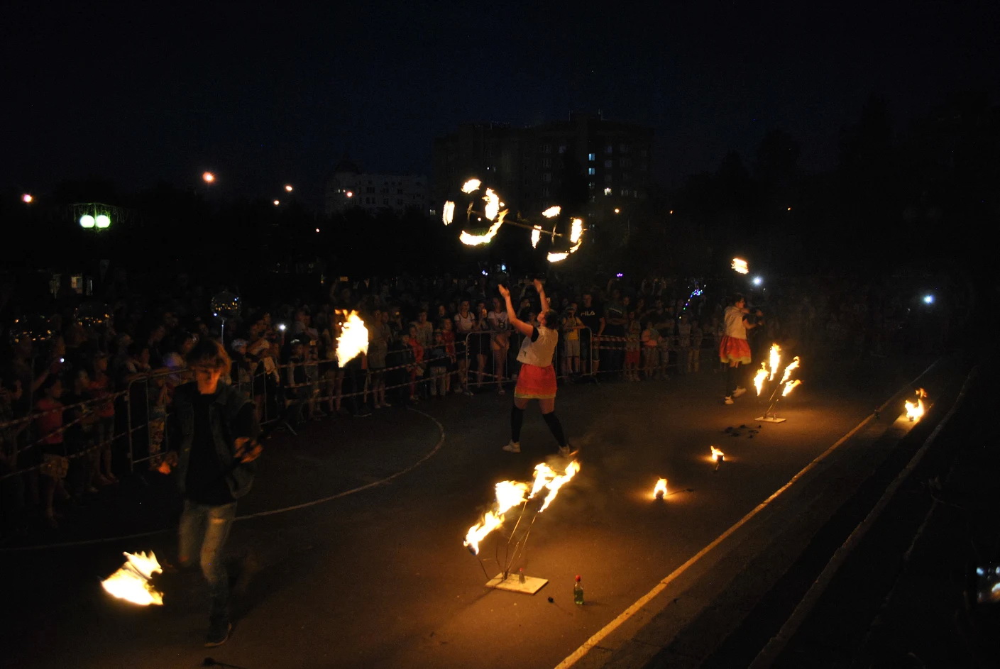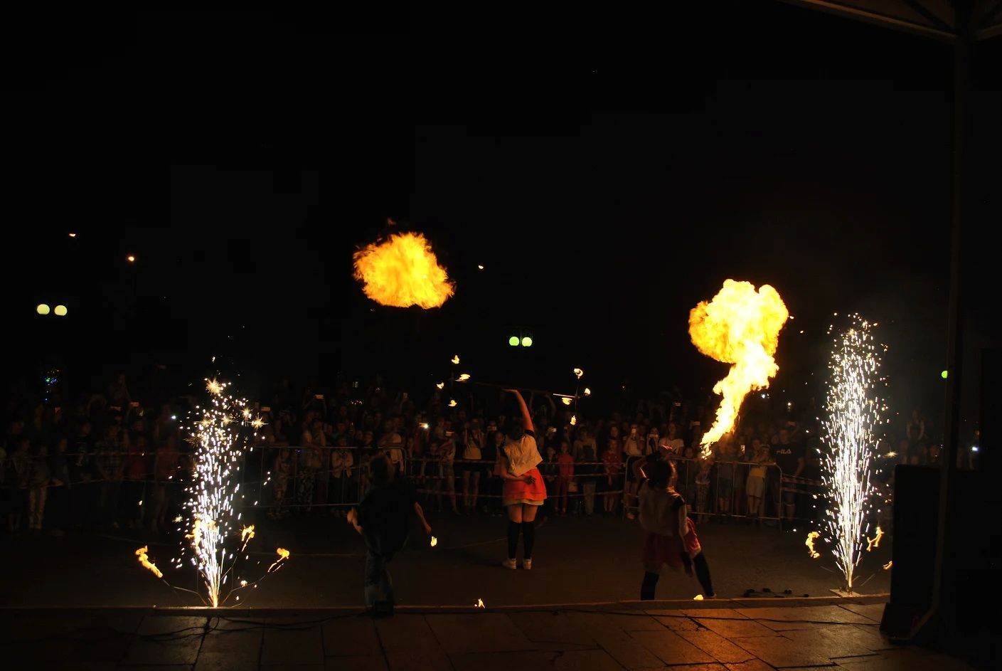 Невероятный антураж фестивалю придала арт-студия «Тиаро» со своей огненной (в прямом смысле этого слова) программой. Выступающие запросто общались с одной из опаснейших стихий. Казалось, что между ними и огнем было полное взаимопонимание и наслаждение от работы друг с другом. Дамы с огненными веерами походили на фениксов, а парень, дышащий огнем, на дракона. Собравшиеся люди невольно входили в некий сказочный гипноз, наблюдая за плавным танцем бесстрашных артистов.