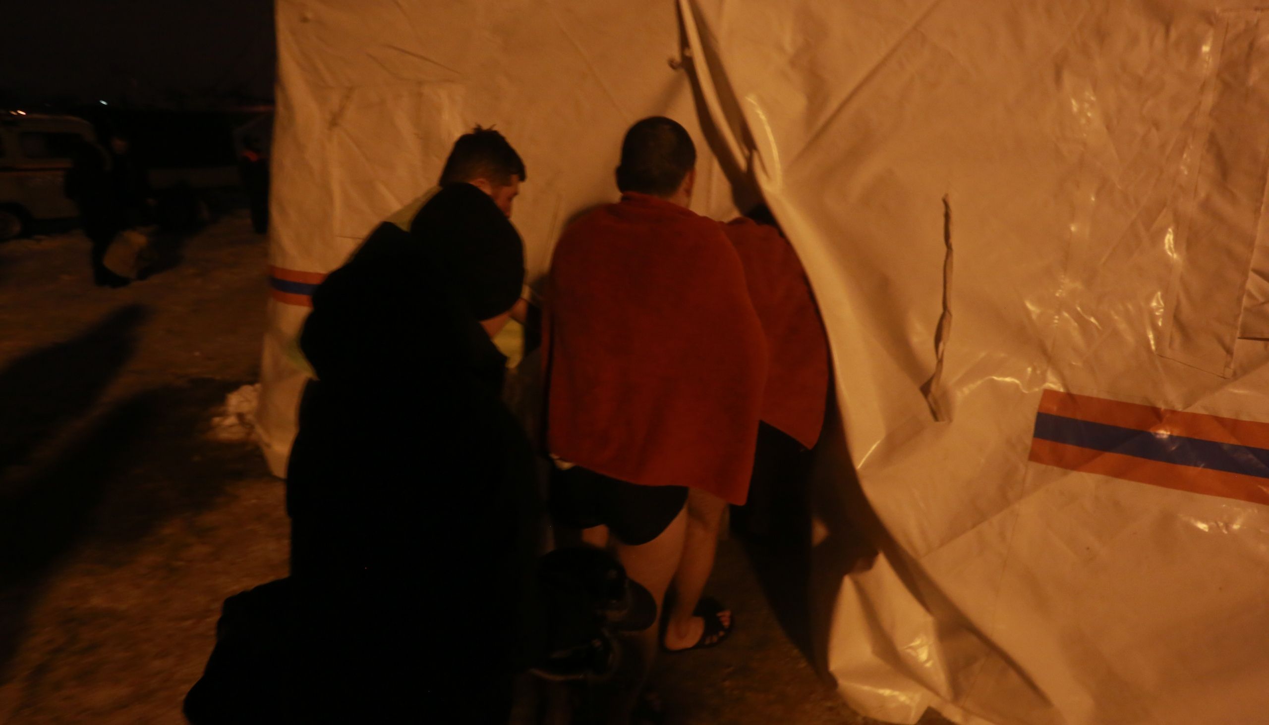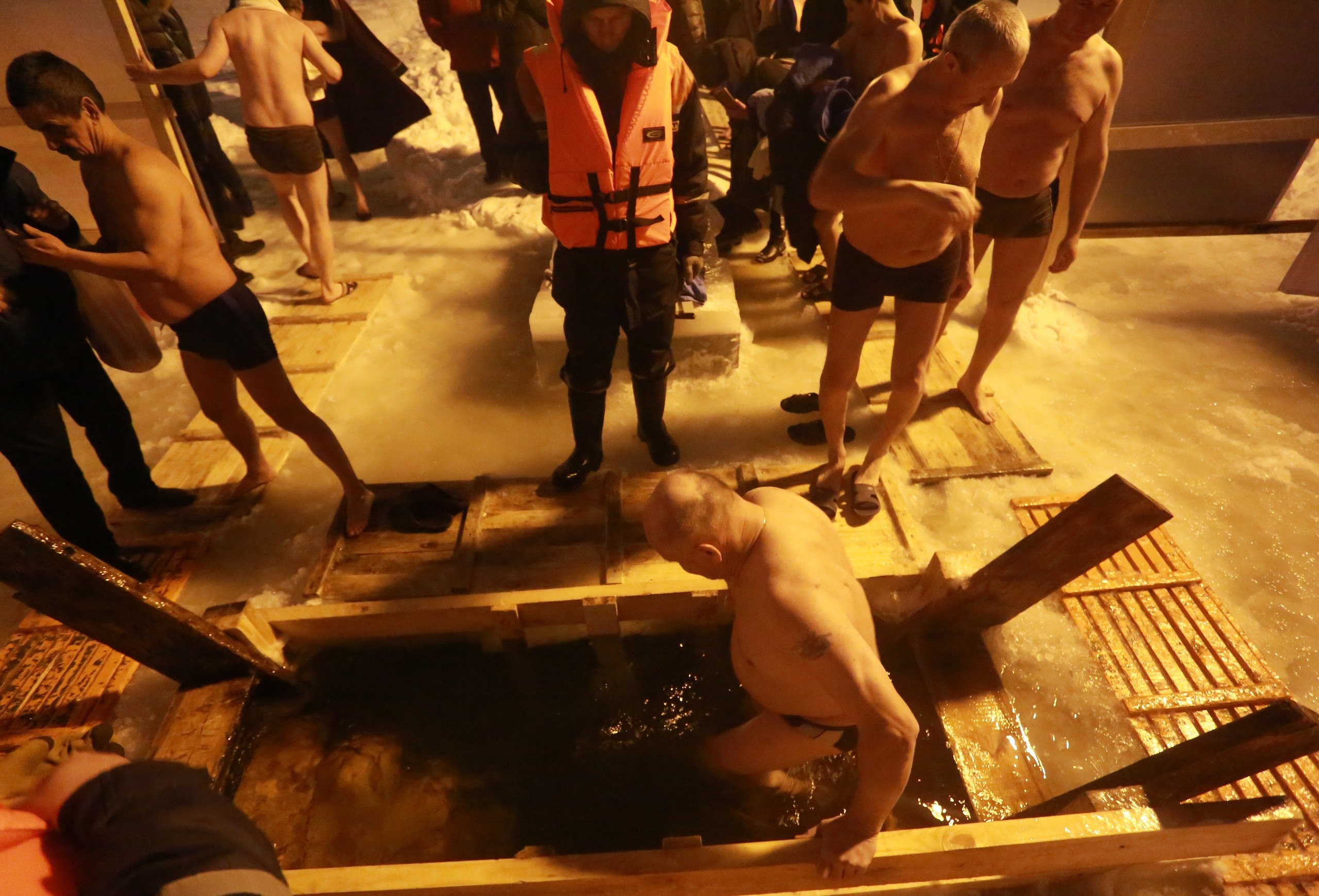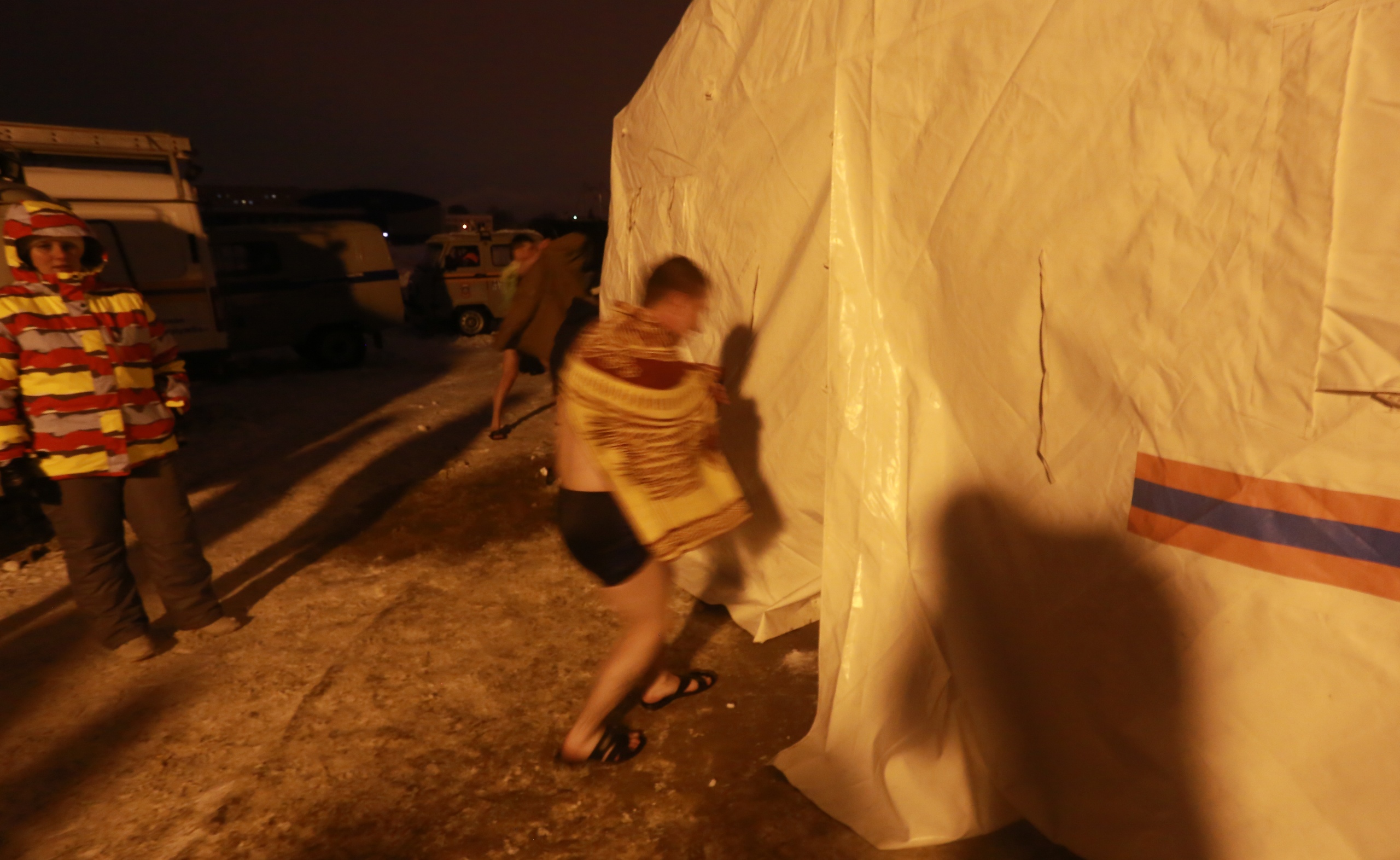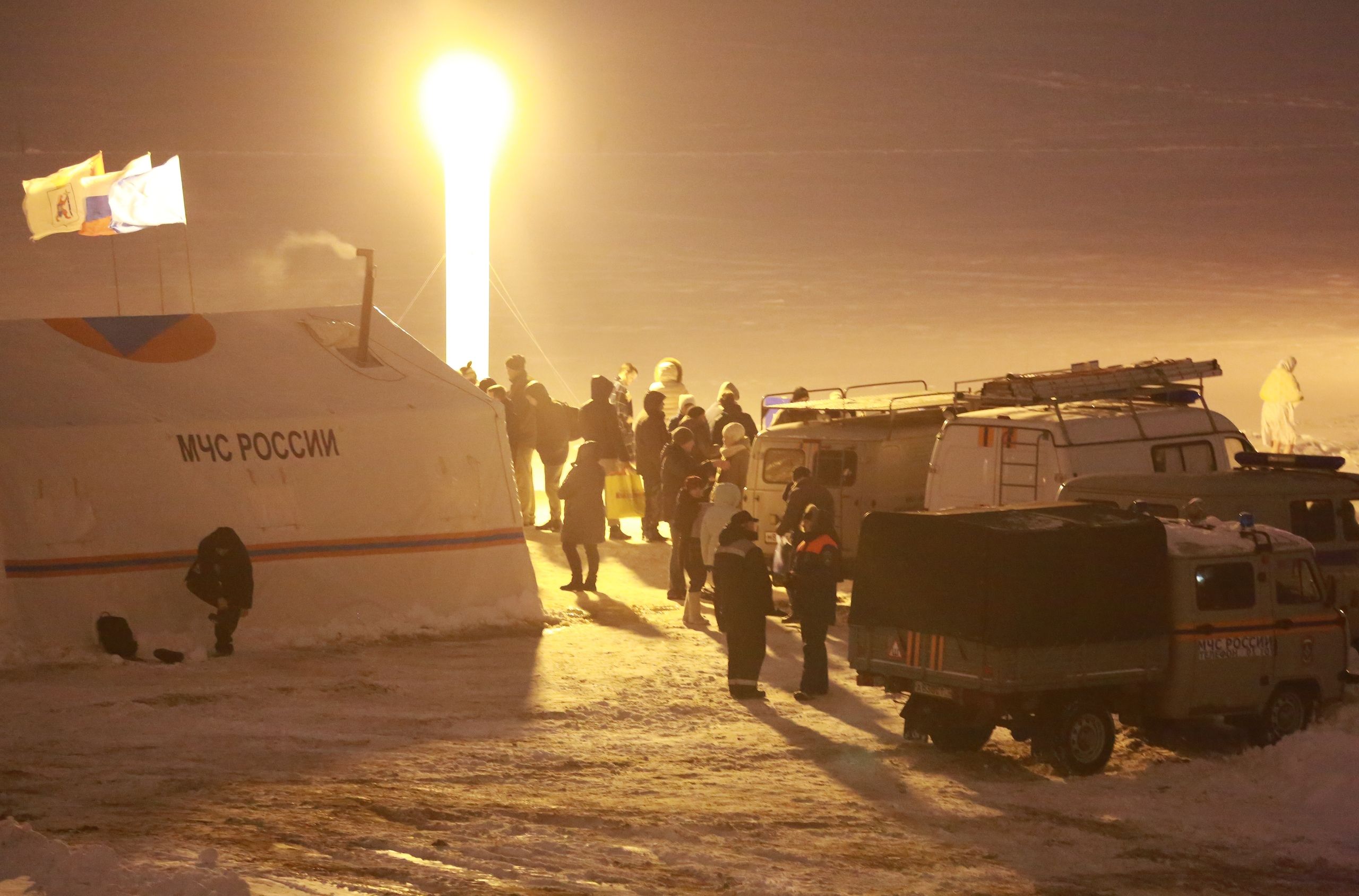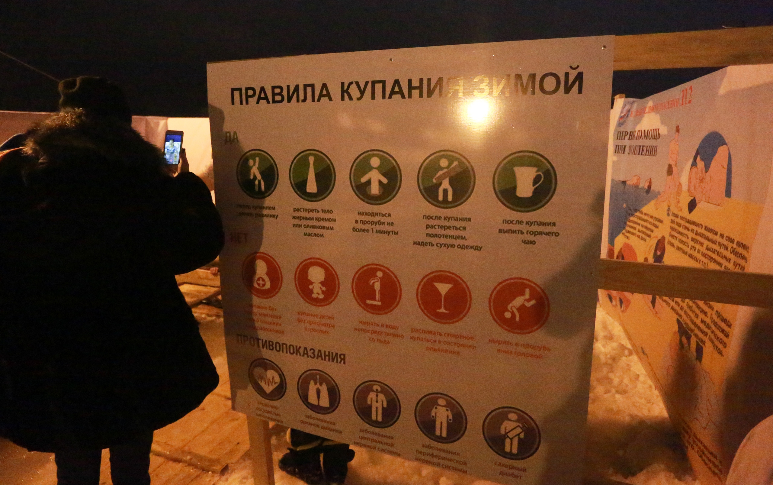 «Официальное» купание в Йошкар-Оле продолжалось до 20 часов. Рядом с желающими окунуться дежурили спасатели и другие специалисты. Для удобства людей ГУ МЧС России по Марий Эл установило палатки, где можно было переодеться и согреться.