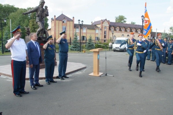 Сегодня в Йошкар-Оле состоялась торжественная церемония прощания начальника ГУ МЧС России по Марий Эл генерал-майора Александра Малкина со Знаменем, которое является официальным символом подразделения. Мероприятие прошло в Воскресенском парке у памятника «Пожарным и спасателям – героям мирного времени».