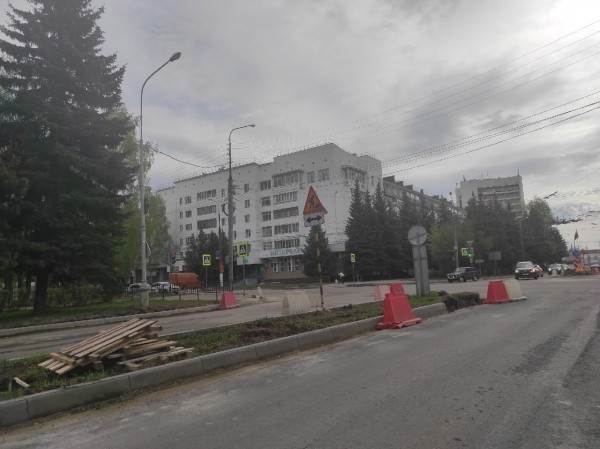 Ремонтные работы проходят  на участке улицы Советской от Панфилова  Яналова, включая кольцевое пересечение.