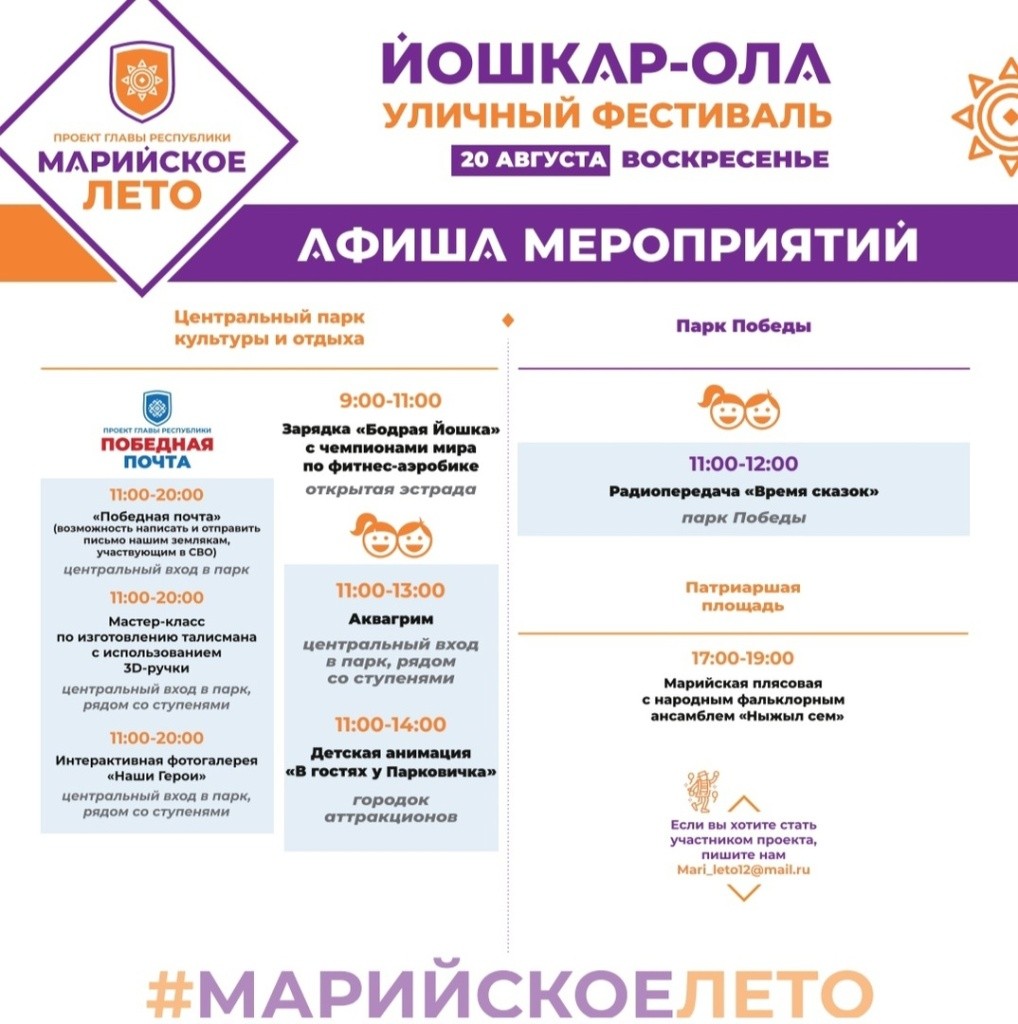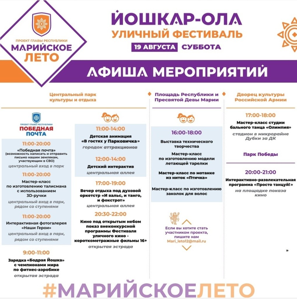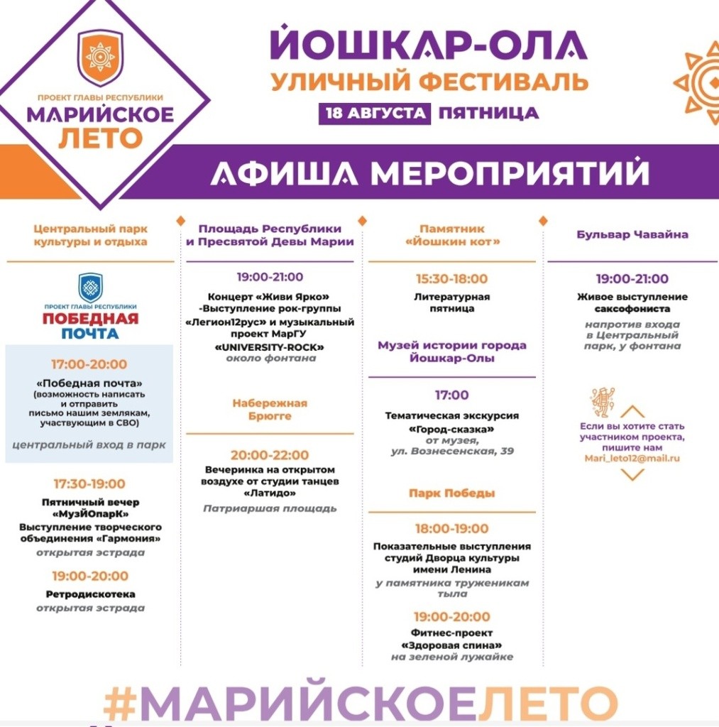 Впереди жаркие выходные, самое время найти, где быть «огоньком»: на набережной, где можно станцевать марийскую плясовую, у «Башни», где пройдет концерт рок-группы или в парке на зарядке! Проект «Марийское лето» продолжает свою борьбу со скукой горожан!