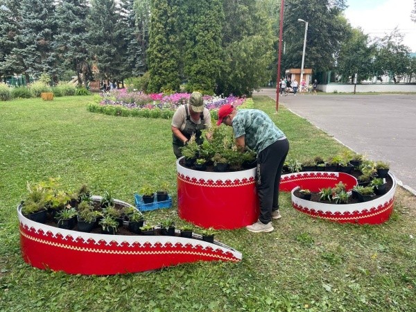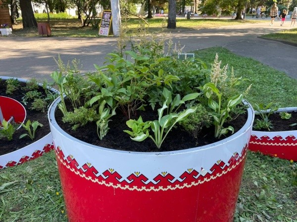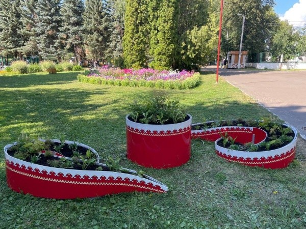 Цветники установлены по пути в городок аттракционов. Конечно, в них уже нет цветов газании и уменьшенной копии композиции «Марийские музыканты», оригинал которой как раз и находится в парке. Но сотрудники парка заботливо высадили в цветники-путешественники новые растения, которые будут радовать глаз посетителей парка.
