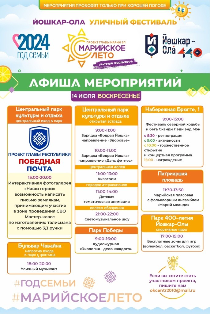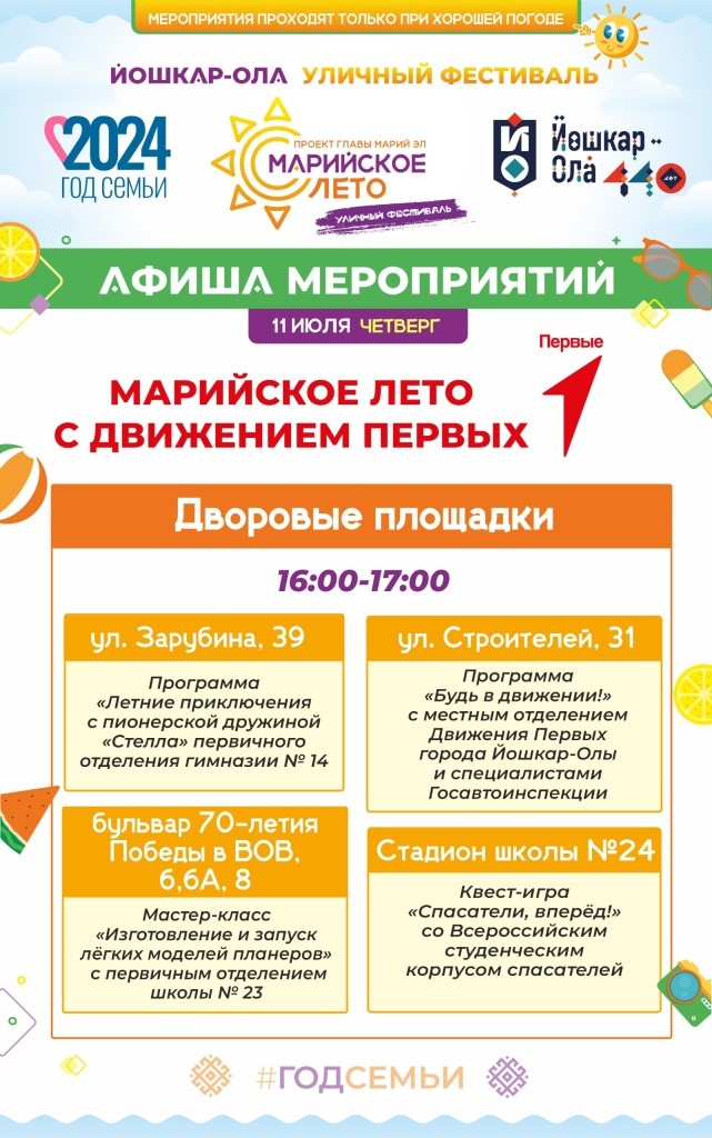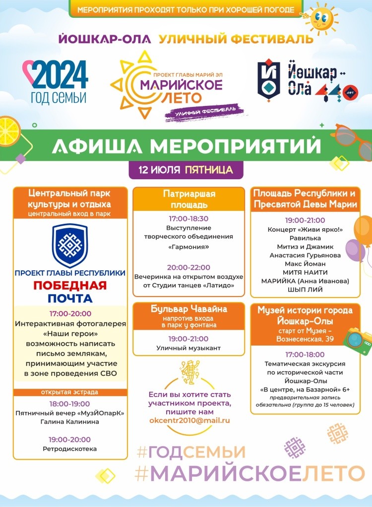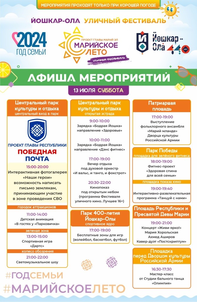Появилась афиша развлечений уличного фестиваля «Марийское лето» на этой неделе. Каждый найдет занятие по душе.