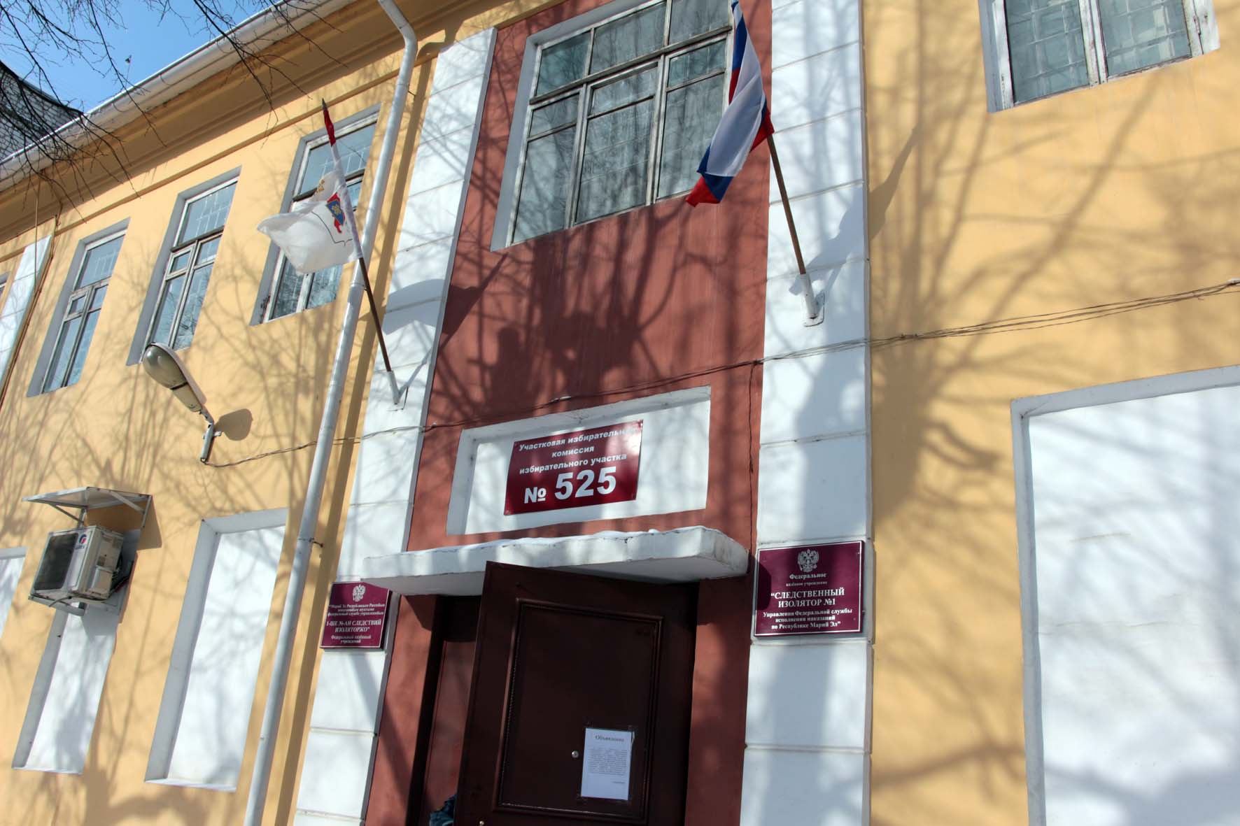 На двери в СИЗО Йошкар-Олы размещена вывеска «Участковая избирательная комиссия избирательного участка № 525». На входе я сдала все личные вещи, в том числе и телефон. С собой разрешили взять только блокнот, ручку и аккредитационное удостоверение. В коридорах дежурят сотрудники СИЗО, один из которых и проводил в помещение, где проходит голосование, меня вместе с пресс-службой УФСИН.