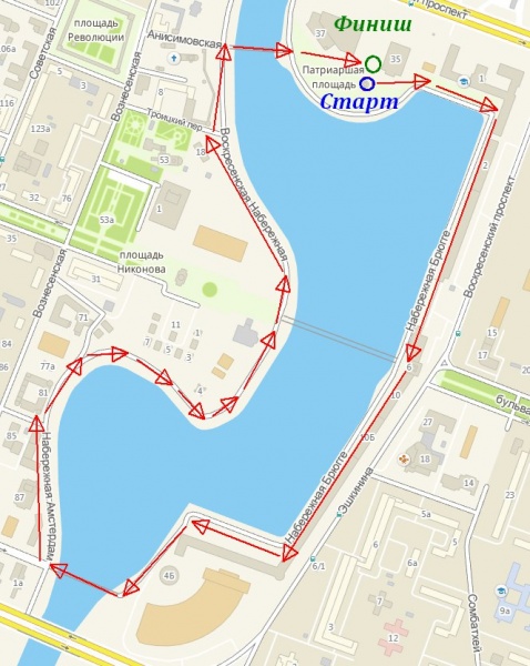 В 10.00 на Патриаршей площади будет дан общий старт несоревновательному забегу, трасса которого пройдёт по набережной Брюгге, площади имени Гоголя, набережной Амстердам и Воскресенской набережной. Время преодоления дистанции любителями бега и скандинавской ходьбы не ограничивается. Приветствуется участие семейных команд.