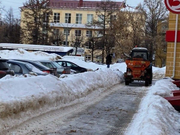 Тротуарные пескоразбрасыватели и щетки помогают сделать проход по улицам Йошкар-Олы более комфортным для пешеходов.