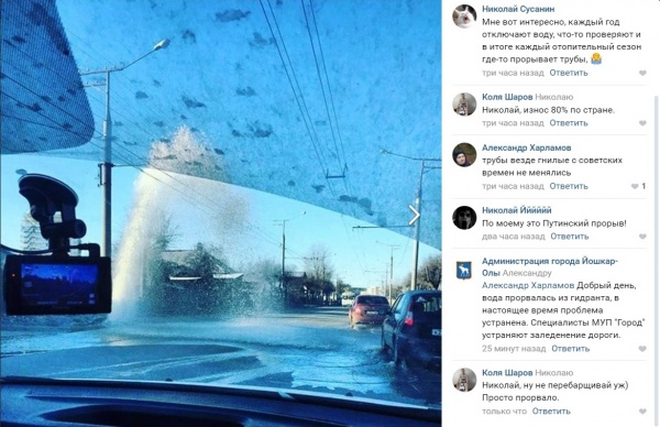 На улице Водопроводная в Йошкар-Оле устранили аварию. Городские власти оперативно отреагировали на сообщение в соцсетях.