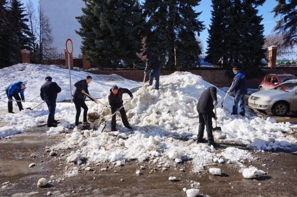 Как помочь весне еще быстрее вступить в свои права, очистить город от снега и высушить тротуары? Можно ворошить снег, чтобы он быстрее таял. Именно этим занялись сотрудники администрации Йошкар-Олы и других учреждений города.