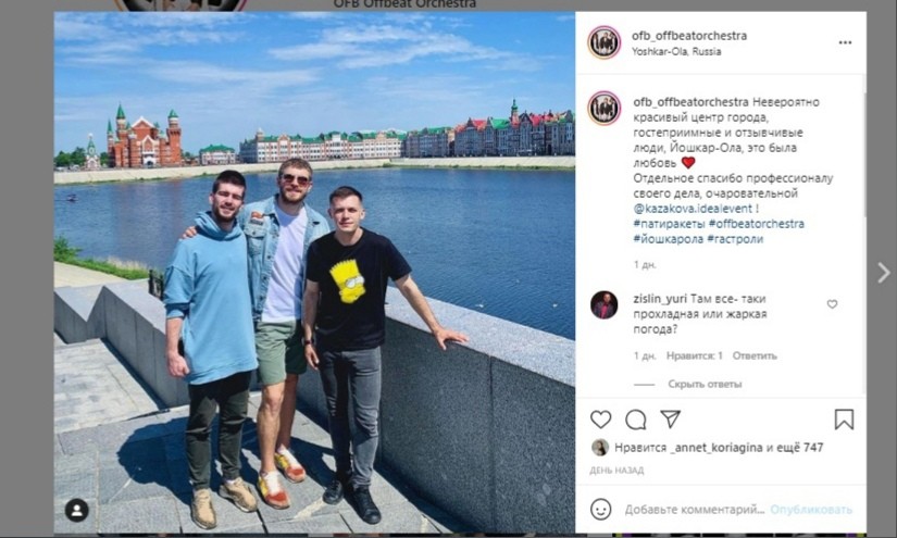 − Невероятно красивый центр города, гостеприимные и отзывчивые люди, Йошкар-Ола, это была любовь, − отметили они в своем Offbeat Orchestra, сообщив, что в городе было +20⸰С.