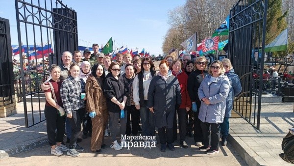 Участники субботника убрали мусор и старые венки, поправили могилы и флаги. Кроме членов семей героев, сюда пришли и кадеты школы №29 им. Героя России Дамира Шаймарданова.