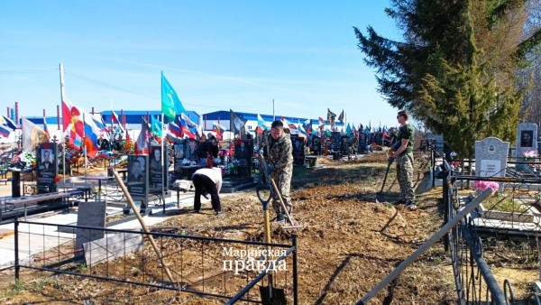 Сегодня, 17 апреля, на Туруновском кладбище благоустроили места захоронений защитников, павших на СВО.