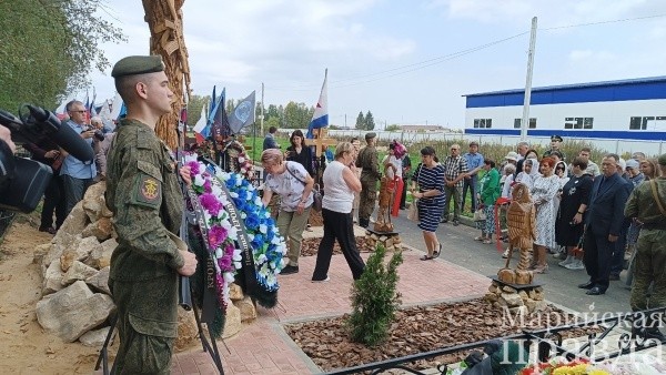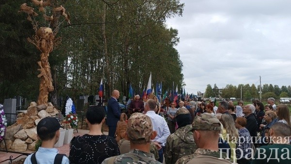 На открытии памятной деревянной скульптуры на Аллее Героев присутствовали военнослужащие, матери, жены, родственники погибших бойцов, представители администрации Йошкар-Олы, муниципального штаба Комитета семей воинов Отечества и общественной организации «Боевое братство». Почтили память погибших минутой молчания и возложением цветов к стеле.