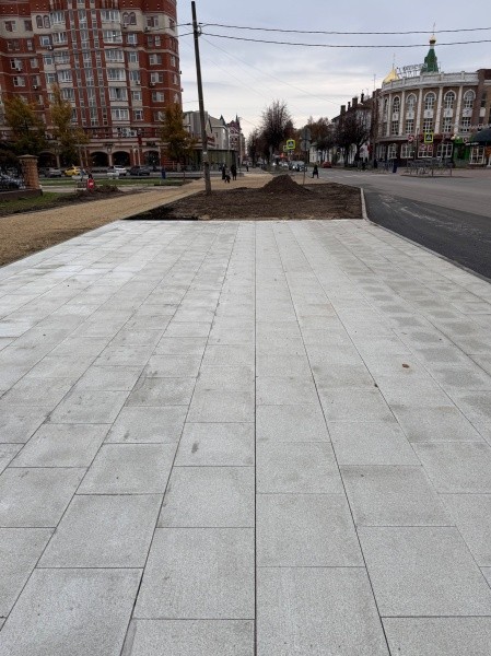 Сейчас рабочие подрядной организации занимаются обновлением пешеходной зоны вдоль улицы Вознесенской. Здесь укладывают гранитные плиты, каждая из которых весит около 25-30 килограммов, пояснили в мэрии.