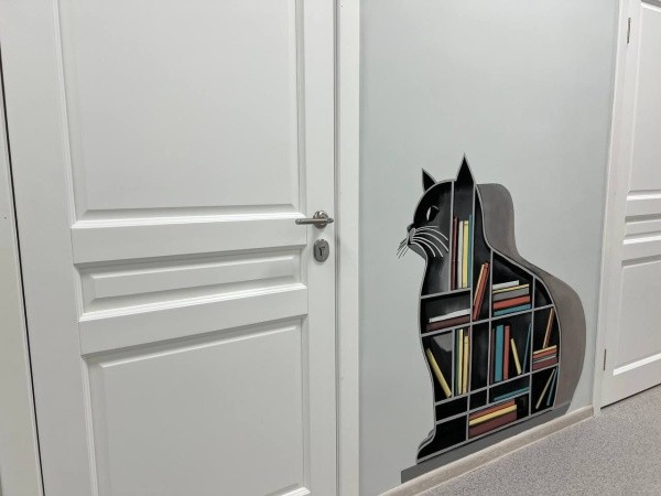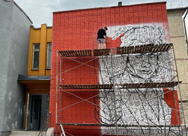 Такую идею предложили сотрудники библиотеки, а за ее реализацию взялся уличный художник - Артём Артохот. Он уже перенес эскиз на стену и приступил к оформлению мурала красками.