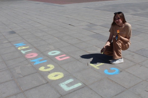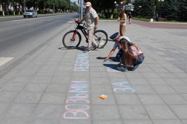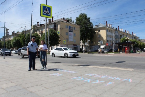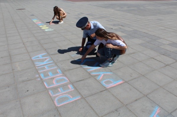 Сотрудники Госавтоинспекции вспомнили детство и порисовали мелом вместе с представителями Детского общественного совета в рамках всероссийской акции «Безопасность детства – 2022».