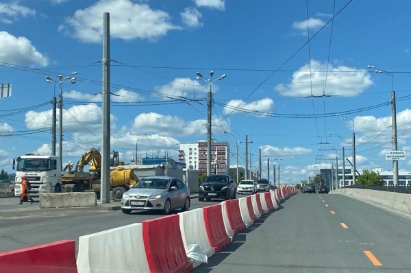 Накануне на Центральном мосту появилась временная разметка, была перенесена контактную сеть на рабочую сторону моста. Проезд транспорта, в том числе троллейбусов, в обе стороны происходит по новой стороне моста.