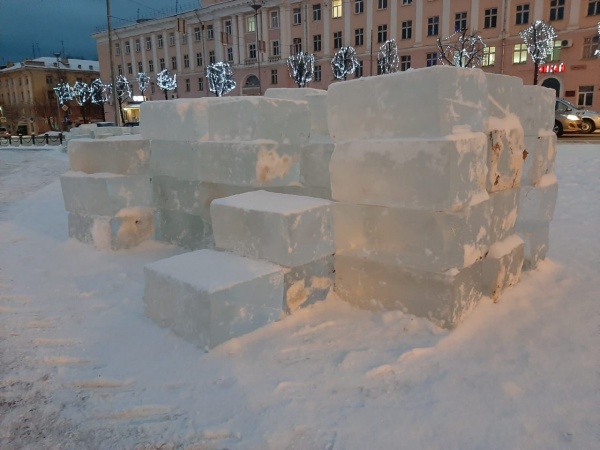 Сегодня на центральную площадь Йошкар-Олы завезли лед для того, чтобы порадовать йошкаролинцев традиционными ледяными фигурами, благо, в этом году погода благоволит их появлению.