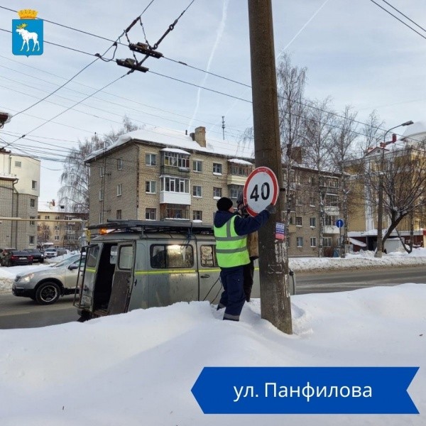 Сегодня, 21 января, сотрудники муниципального предприятия «Город» администрации Йошкар-Олы установили новый дорожный знак 3.24 «Ограничение максимальной скорости» перед пешеходным переходом на ул. Панфилова, 33, который позволяет двигаться на этом участке дороги со скоростью не более 40 км/ч.