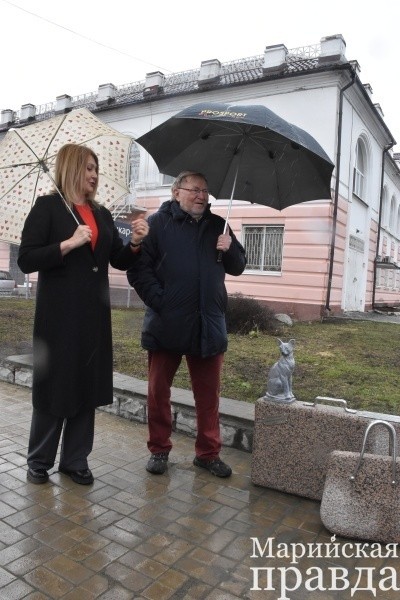 Меценаты из столицы Марий Эл супруги Марина и Владимир Ельцовы преподнесли горожанам и гостям республики новый подарок – скульптуры забавной кошечки, чемодана и женской сумочки. Композицию установили на перроне железнодорожного вокзала Йошкар-Олы. Теперь милое животное встречает и провожает пассажиров, желая им доброго пути!