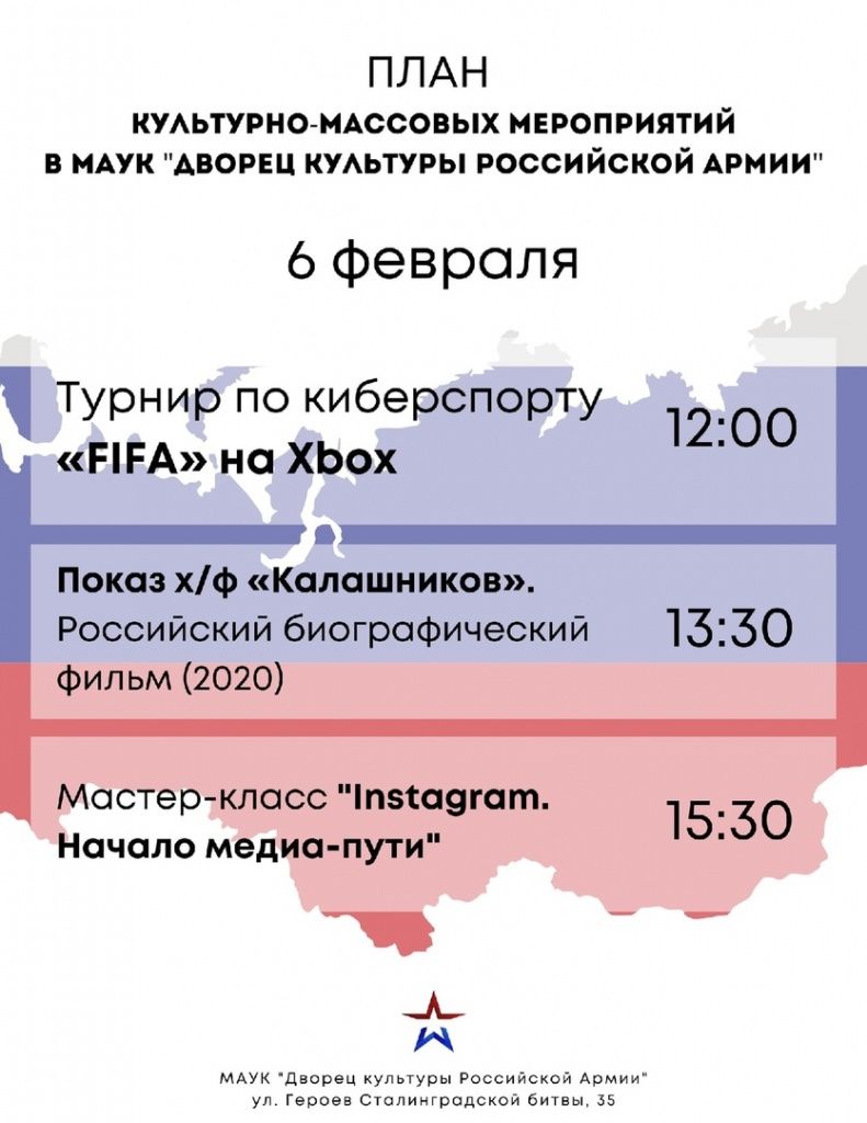 Дворец культуры Российской Армии приглашает провести сегодняшний день, 6 февраля, спортивно и увлекательно.