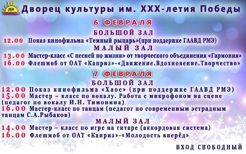 Посетителей Дворца культуры им. ХХХ-летия Победы также ждут увлекательные выходные.