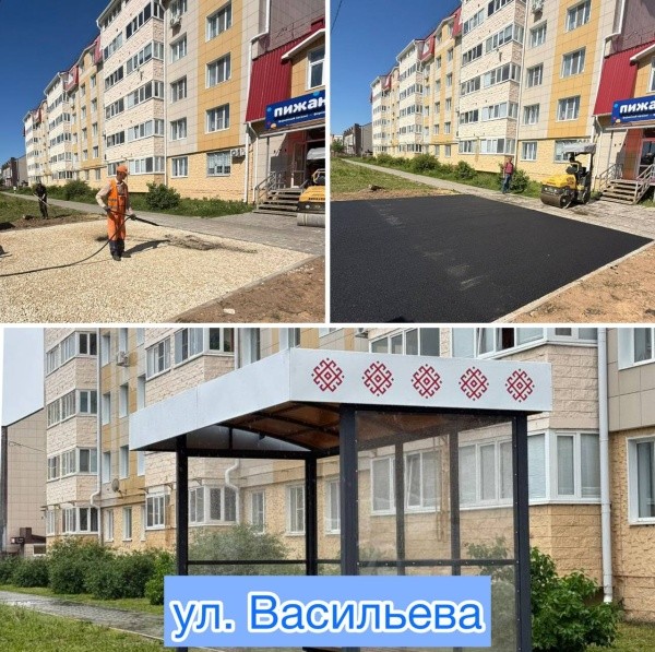 Новые павильоны не только удобны, но и красивы: их ограждения сделаны из прочного монолитного поликарбоната, а торцы крыш украшены национальными марийскими символами. Перед установкой дорожники подготовили площадки, обустроив удобные подходы и уложив новый асфальт.