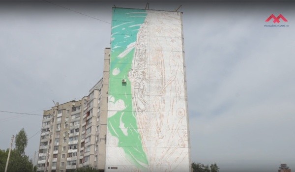 Известный художник Илья Белов продолжает отрисовывать граффити «Мы вместе – в одной лодке» на стене жилого дома в микрорайоне Ширяйково в Йошкар-Оле.