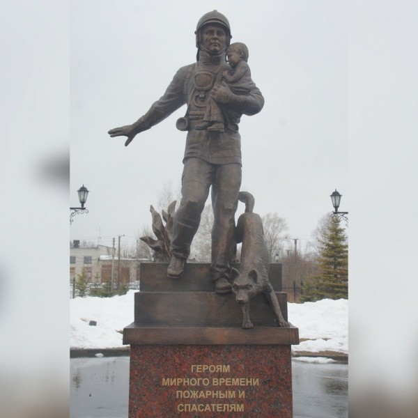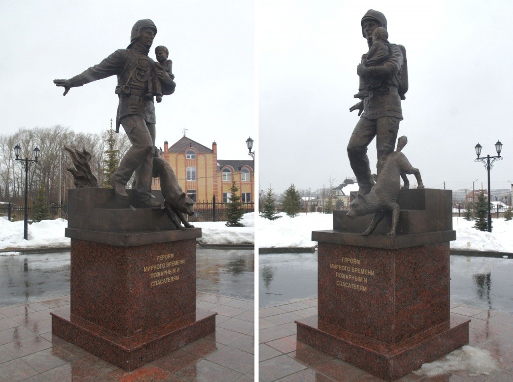 Для спасателей и сотрудников МЧС это символ их непростой работы, а для остальных жителей марийской столицы – способ напомнить о тех, кто всегда готов прийти на помощь. Проходящий по Воскресенскому парку сразу заметит эту композицию – фигуру человека с ребенком на руках, которого тот выносит на руках из огня. Рядом с ними – собака, словно напоминающая прохожему о случаях, когда пожарные и спасатели выводили из полыхающих построек и зданий не только людей, но и животных. В ведомствах отмечают, что образ для монумента собирательный.