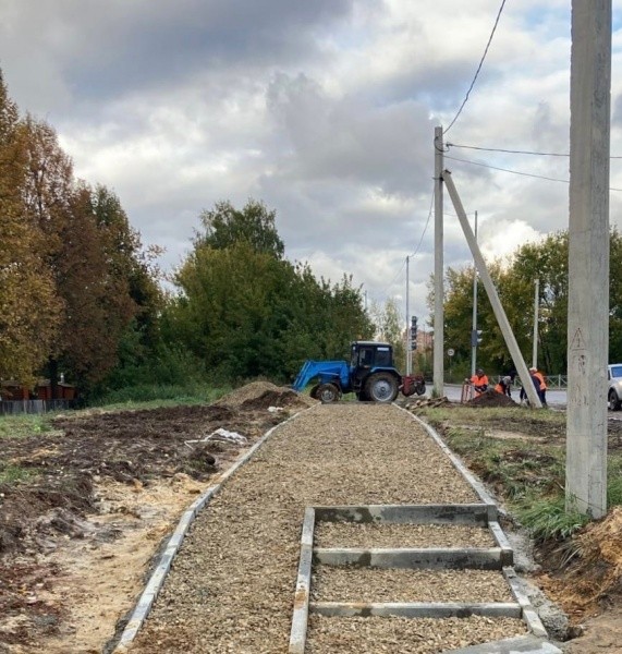 Сотрудники МУП «Город» делают дорожку и асфальтируют тротуар для создания удобной инфраструктуры для пешеходов.