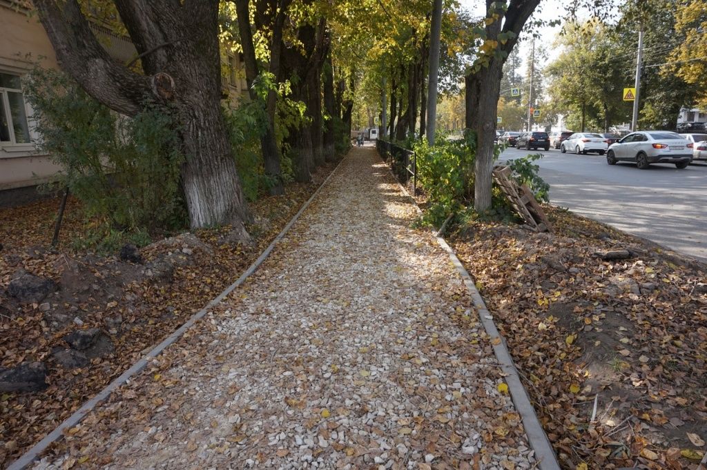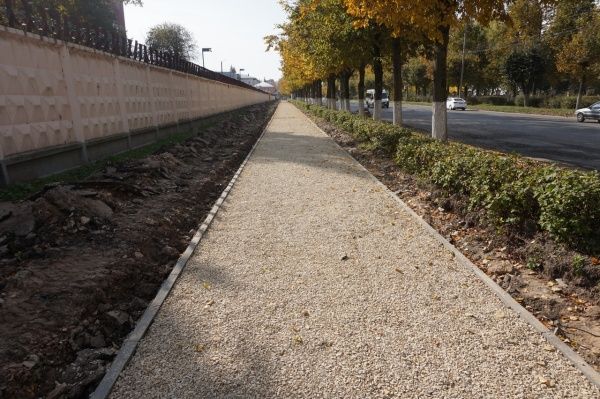 Тротуары с каждым днем приобретают более ухоженный вид: приведены в норму формы пешеходной дорожки, уложена щебенка и скоро появится асфальтовое покрытие. Кроме этого, будут установлены малые архитектурные формы и проведено озеленение.